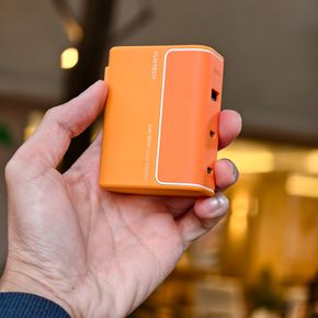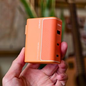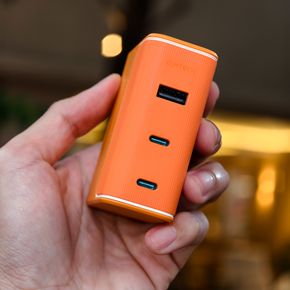 Sử dụng gam màu cam trên cục sạc là rất hợp lý, nó là màu của năng lượng, màu của điện lực EVN, lại nổi bật và cá tính. Công nghệ GaN và chân cắm có khả năng gập vào được giúp kích thước của cục sạc gọn gàng, tuy nhiên nó không nhẹ, mà cầm đầm tay, chắc chắn.