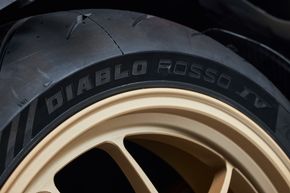 Bộ mâm 17 inch được làm từ hợp kim nhôm nhẹ. Heo trước là Brembo Hypure kết hợp đĩa floating 320 mm, cùng tay thắng Brembo radial 17 mm có tính năng tự xả gió. Thắng sau là đĩa 265 mm với Brembo 2 piston 34 mm; hệ thống ABS vào cua cũng được tinh chỉnh lại với 3 mức can thiệp. Bộ lốp Pirelli Diablo Rosso IV (120/70-17 trước, 190/55-17 sau) phù hợp với cấu trúc khung xe.