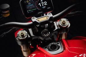 Ở phía sau, khó có thể bỏ qua yên xe đỏ nổi bật, được thiết kế lại hoàn toàn và bọc Alcantara cao cấp. Cả vị trí lái và vị trí người ngồi sau đều có hình dáng mới và mật độ mút khác nhau. Yên lái rộng hơn 20 mm phía trước và rộng hơn, dài hơn 40 mm phía sau, giúp tăng độ êm. Yên sau cũng được tăng thêm 20 mm.