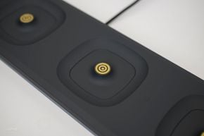 Và khi để lên trên đế với 2 hay 4 cái thì nó càng đẹp và gọn gàng hơn nữa. Chúng ta sẽ thiết lập cho cái đế ở vị trí chúng ta muốn. Làm cho dây điện gọn gàng, và như vậy là gần như không thấy sự tồn tại của dây điện - kẻ thù của không gian đẹp.