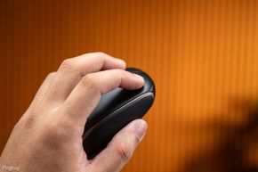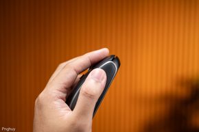 Chất liệu hoàn thiện là nhựa nhám, cho cảm giác cầm nắm sạch sẽ, không bám vân tay. Quan trọng hơn, hai bên hông được bọc một lớp cao su với các vân sọc, giúp tăng độ bám đáng kể. Với kiểu thiết kế này, nó là lựa chọn hoàn hảo để anh em bỏ vào balo, túi xách mang đi làm, đi cà phê mà không chiếm một chút diện tích nào.