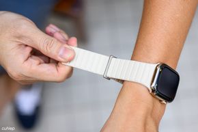 Tươi tắn nhất và phù hợp với đa số, là Uniq Revix Evo Reversible Magnetic. Như cái tên gọi, bên trong dây là nam châm, đeo tới đâu hít tới đó, và cố định thêm bằng một ngàm kim loại để luồn dây qua. Nó có đủ mọi kích thước và màu sắc, nên anh chị em an tâm: 38, 40, 41, 42, 44, 45 và 49mm, tức là từ Apple Watch Series 1 cho tới Apple Watch Ultra 3, đều sẽ có phiên bản Revix Evo lắp vừa: