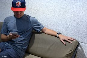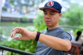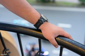 Nếu cổ tay không bự như Tú Táo trong hình trên, thành ra ngại cái khớp bằng thép của Skinarma Titon, nhưng vẫn muốn có được trên cọng dây là những đường nét hiện đại và khỏe khoắn, thì chúng ta có lựa chọn thứ hai: Skinarma Gemini. Mình rất thích những đường cắt ngang chia cọng dây thành từng phần. Anh em có thấy những đường cắt này giống vent tản nhiệt của những chiếc siêu xe thập niên 1980, như Ferrari Testarossa không?
