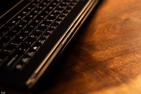 Còn trong khi đó ở phía trên của touchpad, bàn phím lại có kết cấu, hành trình phím và kích thước phím truyền thống hơn. Đương nhiên nó vẫn đẹp với 5 hàng phím đều tăm tắp kèm thêm đèn RGB. Nhưng nó không quá quái dị như Dell XPS, dễ sử dụng và thao tác hơn nhiều, kể cả là làm việc, gõ văn bản hay chơi game…