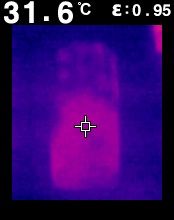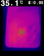 Những hình ảnh chụp nhiệt độ của Redmi Note 14 5G ở vị trí nóng nhất khi mình sạc máy bằng bộ sạc chính hãng Xiaomi 45 W (hình ảnh được sắp xếp theo thứ tự từ trái sang phải tương ứng với các mốc thời gian trong bảng kết quả):