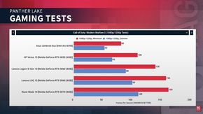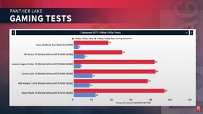 Đánh giá từ ZIp Tie Tech cho thấy, Panther Lake vượt qua Apple M5 khoảng 15% trong Geekbench OpenCL. Trong các tựa game như Shadow of the Tomb Raider, Cyberpunk 2077 và Forza Horizon 5, Intel hoàn toàn áp đảo các đối thủ từ AMD và Apple. Các tựa game nặng như Elden Ring (thiết lập Medium) hay Valheim đều chạy rất mượt mà ở độ phân giải 1200p. Intel cũng đã cải thiện đáng kể độ ổn định của Driver. Ngay cả những game cũ như Crisis (từng là nỗi ác mộng của Driver Arc) hiện đã chạy tốt.