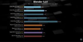 Hardware Canucks cũng đánh giá dựa trên một số tựa game như Rainbow Six Siege, mẫu Core Ultra X9 388H thậm chí cung cấp hiệu năng gấp đôi so với các iGPU tốt nhất của năm ngoái, biến nó thành lựa chọn hàng đầu cho phân khúc laptop mỏng nhẹ chuyên game và sáng tạo. Ngay cả trong các tác vụ chuyên nghiệp như Blender, GPU mới này giúp cắt giảm một nửa thời gian dựng hình so với thế hệ trước và bắt đầu tiệm cận khả năng của chip Apple M5.