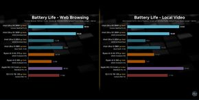 Kết quả ban đầu về thời lượng pin gây kinh ngạc khi chiếc IdeaPad Pro 5 đạt mức kỷ lục 30,5 giờ lướt web liên tục, trong khi ZenBook Duo đạt hơn 24 giờ, vượt xa cả MacBook Pro và các dòng chạy chip Snapdragon. Tuy nhiên, video cũng chỉ ra một sự thật quan trọng là cả hai mẫu máy này đều sở hữu dung lượng pin khổng lồ lên tới 99,9 Wh, mức tối đa cho phép trên máy bay, nên đây là một yếu tố mang tính hỗ trợ rất lớn cho kiến trúc mới của Intel.