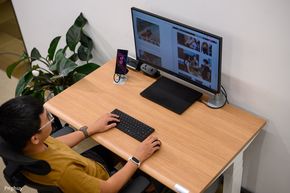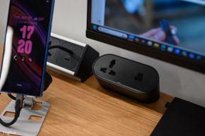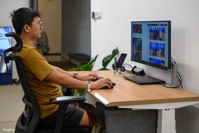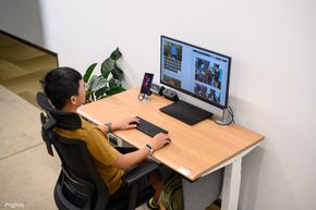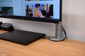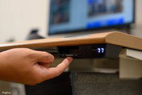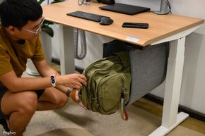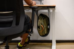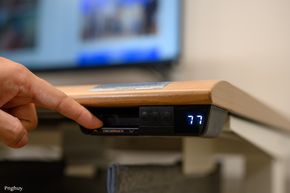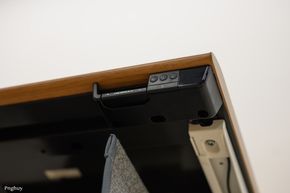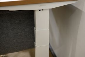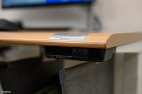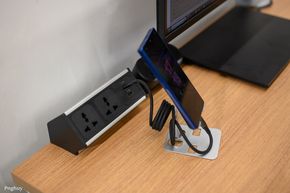 Người dùng có thể gắn ổ cắm từ dưới mặt bàn, đặt power strip trong khay. Hệ thống dây được thiết kế tính đến chiều cao tối đa của bàn, tránh tình trạng dây bị căng hoặc tuột khi nâng lên vị trí cao nhất.