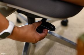 Độ cao ghế có thể tăng giảm khoảng 120 mm bằng cần gạt bên phải, còn độ sâu mặt ngồi cũng có thể trượt khoảng 50–55 mm, giúp khớp với chiều dài chân và tư thế tỳ đùi của từng người, tránh tình trạng ghế quá sâu hoặc quá ngắn.