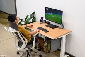 Cơ cấu nâng hạ điện vận hành êm, bắt đầu dịch chuyển chậm rồi tăng tốc mượt mà, tốc độ giữ ổn định ngay cả khi mặt bàn đang tải nặng, giúp việc chuyển trạng thái không làm gián đoạn tập trung khi làm việc. Nút điều khiển dạng cần gạt hoặc cụm phím bấm được đặt trong tầm tay, thao tác trực quan: chỉ cần đẩy lên hoặc kéo xuống, hoặc nhấn nút lên xuống là mặt bàn sẽ trượt về vị trí mong muốn và dừng lại chính xác.