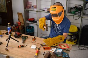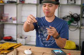 Mình thử đóng đinh xuyên qua viên pin và cắt một góc pin với sự giám sát và hướng dẫn của nhân viên nhà phân phối pin BMX ở Việt Nam là HD Accessory. Anh em đang dùng pin thể rắn không nên thử tại nhà vì ngoài pin ra còn có mạch điện và pin thể rắn cung không phải 100% không cháy nổ.