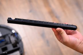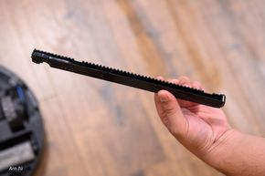 Điểm khác biệt dễ nhận thấy nhất trên T90 PRO OMNI so với nhiều robot khác trên thị trường là hệ thống lau. Thay vì sử dụng cặp giẻ lau xoay tròn, Ecovacs đã trang bị công nghệ OZMO ROLLER 3.0, sử dụng một con lăn lau bằng sợi nylon mật độ cao, dài 27cm. Cái dài hơn này không chỉ để cho vui nha anh em, đơn giản là dài hơn nó sẽ cho tiết diện lau trong một lần nó đi nhiều hơn, dẫn tới việc nó sẽ đi ít hơn nếu so với những con lăn không dài.