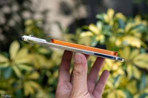Cục pin này mình mượn của Cuhiep, có màu cam, siêu mỏng chỉ 6mm, dung lượng 5000mAh, công nghệ pin truyền thống chứ không phải Silicon-carbon hay pin thể rắn như các sản phẩm của BMX.