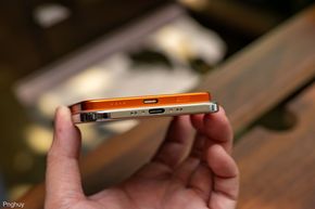 Cổng USB-C trên pin và trên iPhone Air.