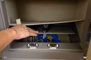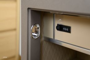 Bên trong két, phía trên còn một ngăn bên trên khoá bằng khoá số.