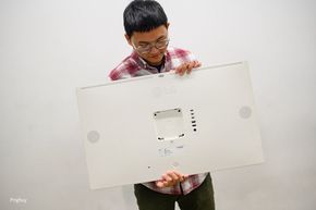 Màn hình cũng được tích hợp sẵn loa ở mặt sau. Âm lượng khá to, đủ lấp đầy một căn phòng ngủ hoặc phòng khách nhỏ. Dù âm bass không quá sâu, nhưng để xem YouTube, xem phim hay nghe nhạc giải trí cơ bản thì hoàn toàn đáp ứng tốt (anh em thích âm thanh vòm có thể kết nối thêm loa Bluetooth).