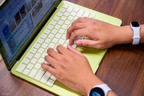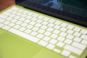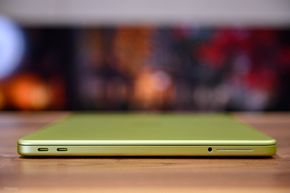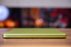 Hơn nữa, màu máy là màu nào thì bàn phím sẽ đi theo tone màu đó, như phiên bản màu vàng chanh thì bàn phím sẽ không trắng hoàn toàn mà có pha chút màu xanh.