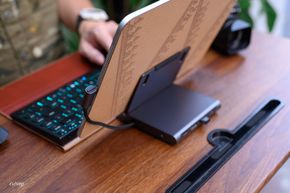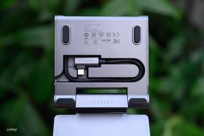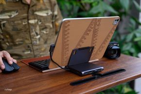 Đẹp mắt khi để iPad lên: Với mình thì nếu không đẹp mắt sẽ khó chịu và không sử dụng. Đế này của Satechi có sẵn một sợi dây USB-C đầu L thiết kế đẹp nên khi cắm vào nó hợp mắt, dễ nhìn. Tiếp theo là cái đế để iPad, khi để iPad lên thì nó che hết những dây phía sau mà chỉ thấy phần đế rất đẹp.