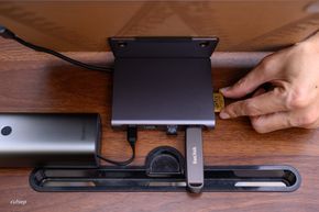 Anh em cắm sợi dây USB-C có sẵn (dài 17 cm, mình dùng iPad 13" thoải mái) vào iPad rồi từ đó chúng ta có thể mở rộng ra các kết nối khác cũng như nguồn điện. Lúc này iPad từ 1 cổng USB-C thành một chiếc máy tính có tới 7 cổng kết nối. Nhiều hơn các máy tính bình thường hay MacBook.