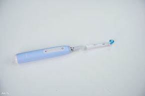 Một trong những tính năng thông minh và hữu ích nhất trên chiếc máy này là cảm biến lực. Đây là một vòng đèn LED ở cổ bàn chải, có khả năng thay đổi 3 màu sắc khác nhau để hướng dẫn người dùng sử dụng lực chải phù hợp. Giống như cơ chế xoay 3 chiều ở trên, đây cũng là tính năng mình thấy iO3 vượt trội hơn so với phần còn lại, lần đầu tiên mình xài bàn chải điện mà có cảm biến lực luôn.